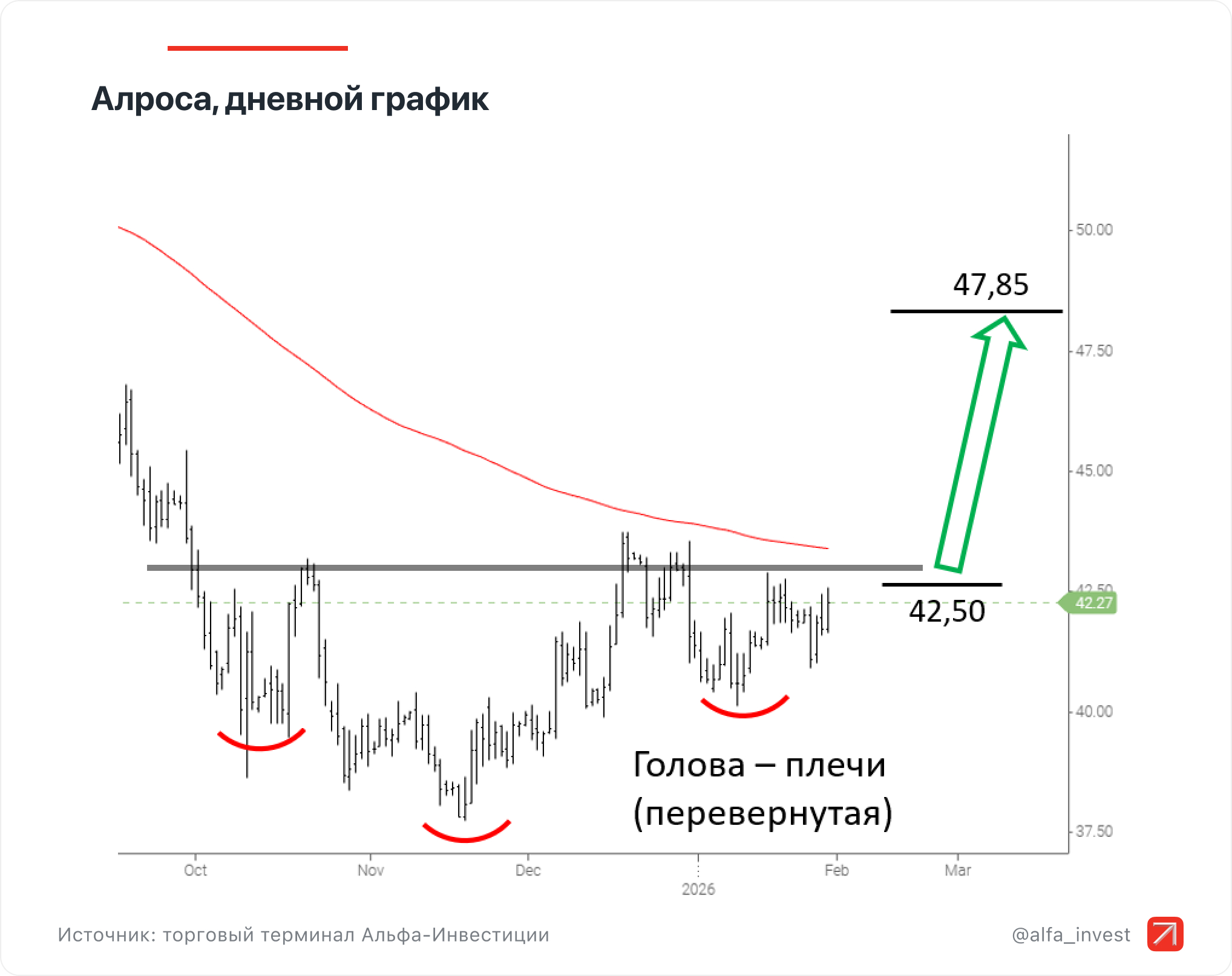 - Покупка: акций АЛРОСы по цене не выше 42,50 руб.