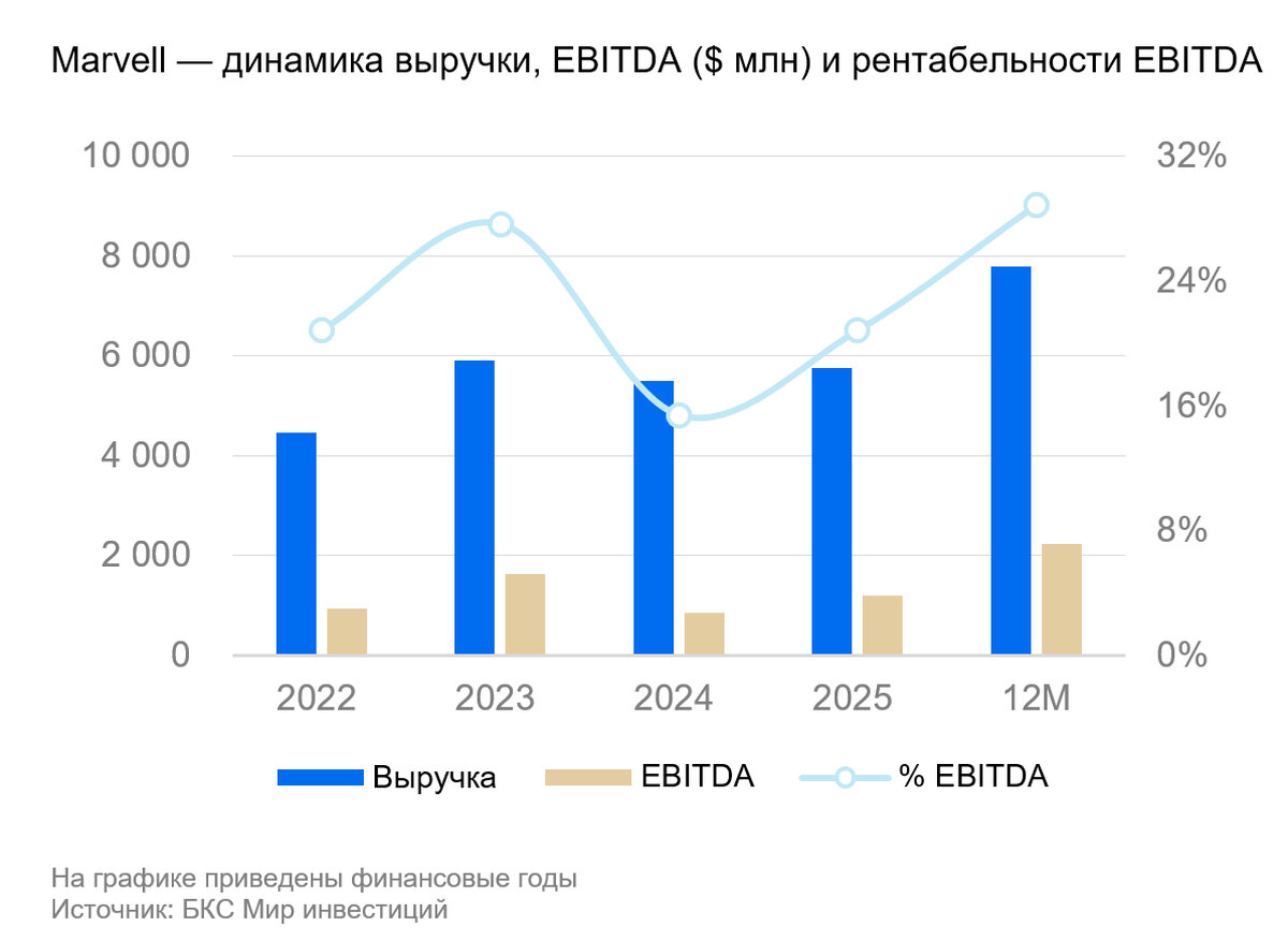 - Marvell — один из основных бенефициаров инвестиций техгигантов в ИИ.