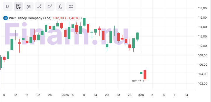 Мы ранее выпускали рекомендацию «Продавать» с целевой ценой $97,4, которая почти реализовалась после отчёта: за вчерашний день котировки обвалились на 7,40% на очень высоких объемах, несмотря на то что в целом американский рынок был позитивен. Сегодня падение продолжилось. Disney показывает себя слабее рынка, поэтому мы снимаем акции с аналитического покрытия, поскольку не видим драйверов для устойчивого роста.