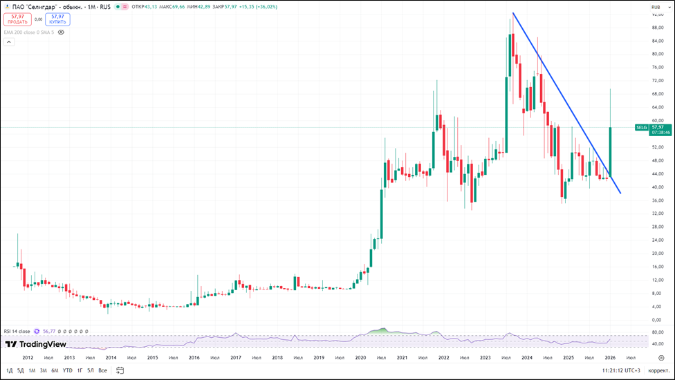 В 2025 году Селигдар не выплачивал дивидендов. Ожидается, что компания примет новую дивидендную политику в начале 2026 года и уже в соответствии с новыми параметрами будет рекомендовать выплаты по итогам 2025 года. Но учитывая большой долг, вряд ли стоит рассчитывать на большие суммы.