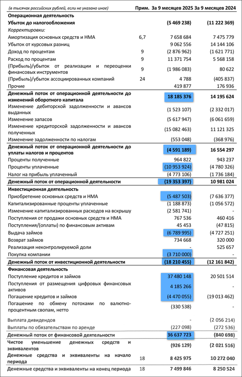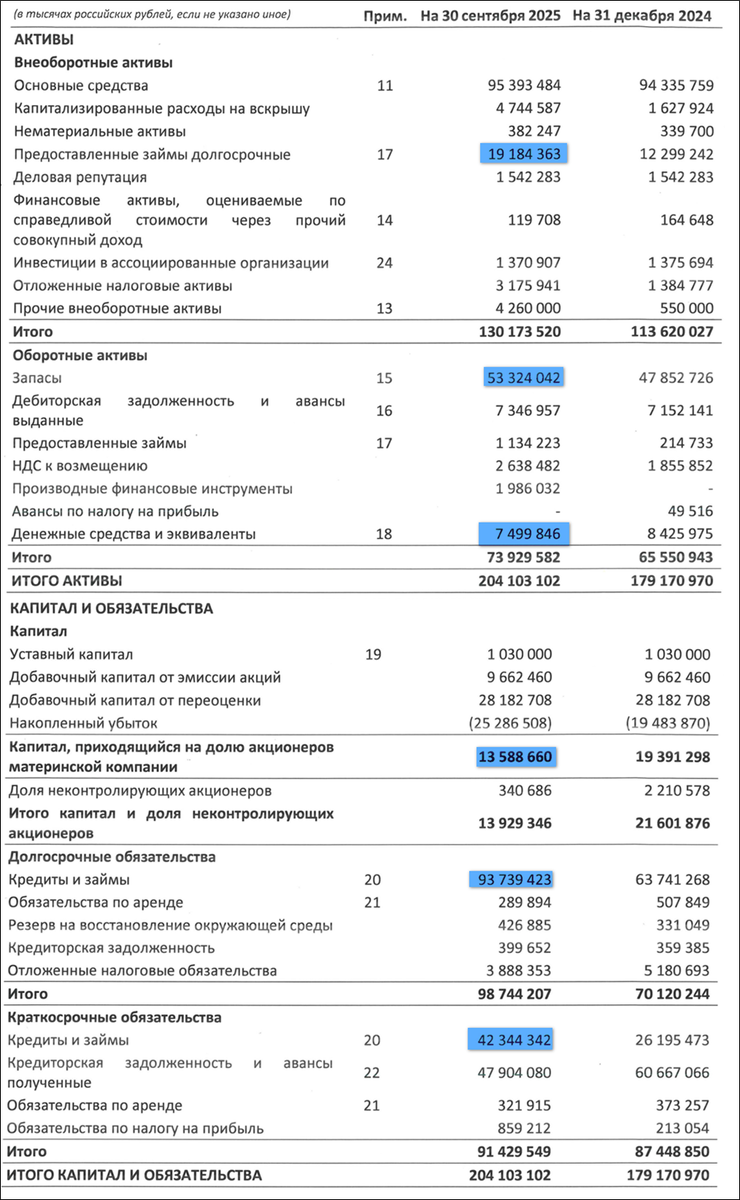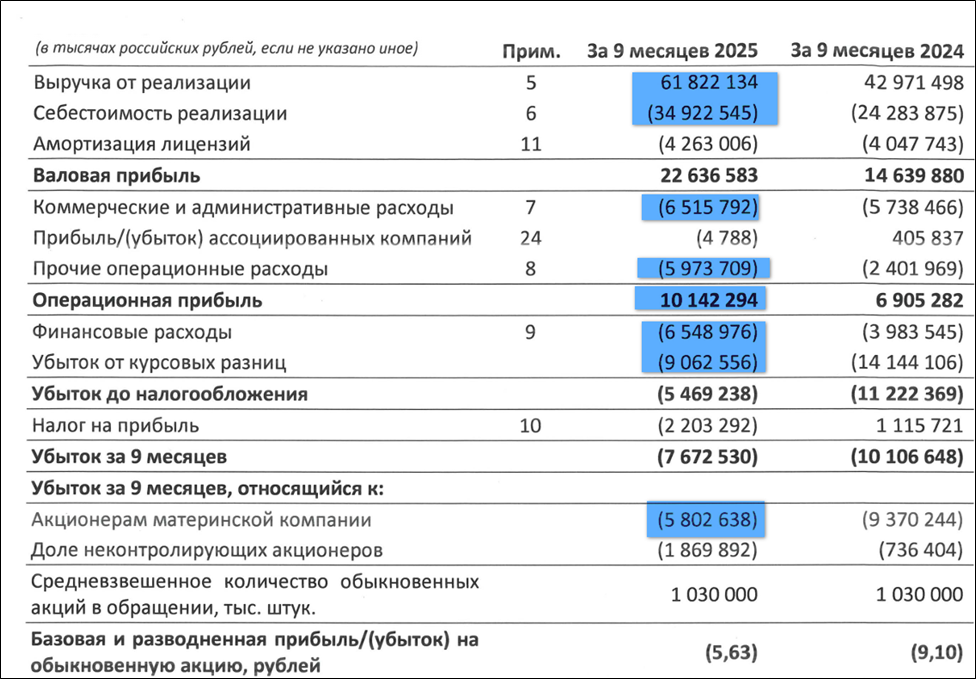 Рассмотрим результаты последнего отчета по МСФО за 9М 2025: