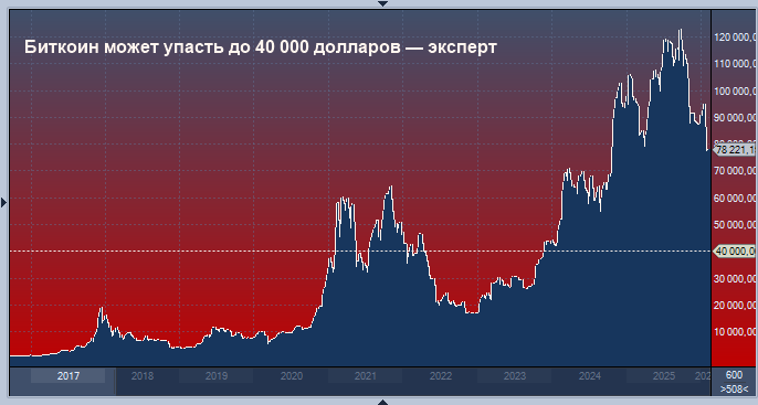 По словам Бланка, при текущем уровне в 76 000 долларов, который вырос со 125 000 (пикового значения), биткоин может достичь 40 000 долларов. Он пришел к этой оценке, основываясь на анализе недавних максимумов и минимумов.