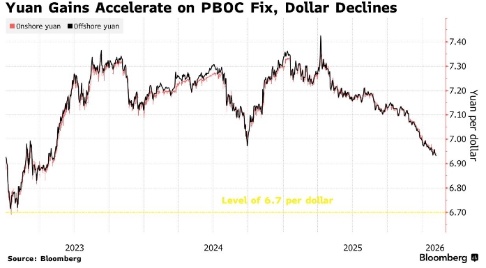 Клаудио Пирон, глава отдела стратегии по процентным ставкам и валютам в BofA Global Research, прогнозирует, что курс юаня на внутреннем рынке к концу третьего квартала составит 6,7 юаня за доллар, вместо ожидавшихся ранее 6,8 юаня. Goldman Sachs Group Inc., Morgan Stanley и Australia & New Zealand Banking Group также пересмотрели свои прогнозы в пользу укрепления китайской валюты.