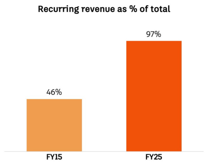 Доля повторяющейся выручки; источник: 2025 Investor Day