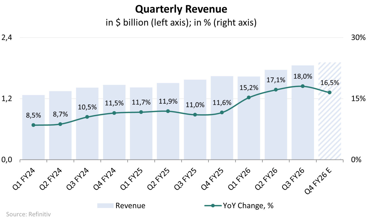 Учитывая динамику развития бизнеса за первые девять месяцев 2026 финансового года, менеджмент повысил прогноз на 2026 финансовый год по ключевым финансовым показателям. Обновленный прогноз на 2026 финансовый год выглядит следующим образом: