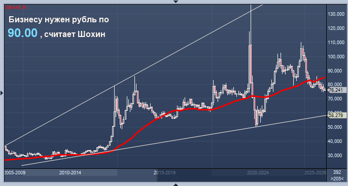 "Укрепление рубля, видимо, к концу года, по крайней мере, не будет иметь место, дальше ему укрепляться, по идее, уже некуда. Но то, что он уже не дойдет до тех прогнозных значений прошлого года, это факт, до уровня 90 рублей за доллар ему еще падать и падать", - считает глава РСПП.