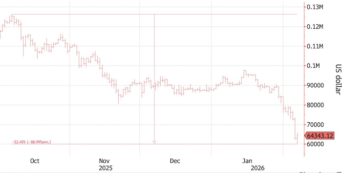 «Биткоин снижается с октября 2025 года. Можно задаться вопросом: был ли он „канарейкой в угольной шахте“, предвещавшей беду, или это просто совпадение», — отметил Крис Уэстон, руководитель отдела исследований в брокерской компании Pepperstone. «Многие маржинальные позиции сейчас ликвидируются очень и очень быстро».