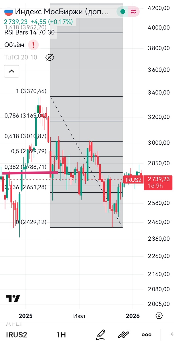 📈Техническая картина по индексу ММВБ не меняется уже очень долго. Была некоторая попытка ввести нас в заблуждение, когда индекс уходил выше 2800. Но все это оказались ложные попытки.