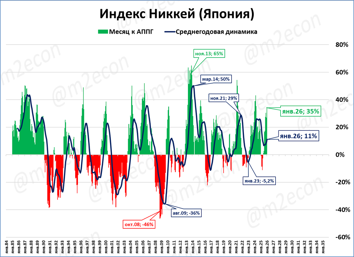 Это восьмой месяц роста индекса Никкей в годовом выражении. Рост явно ускоряется.