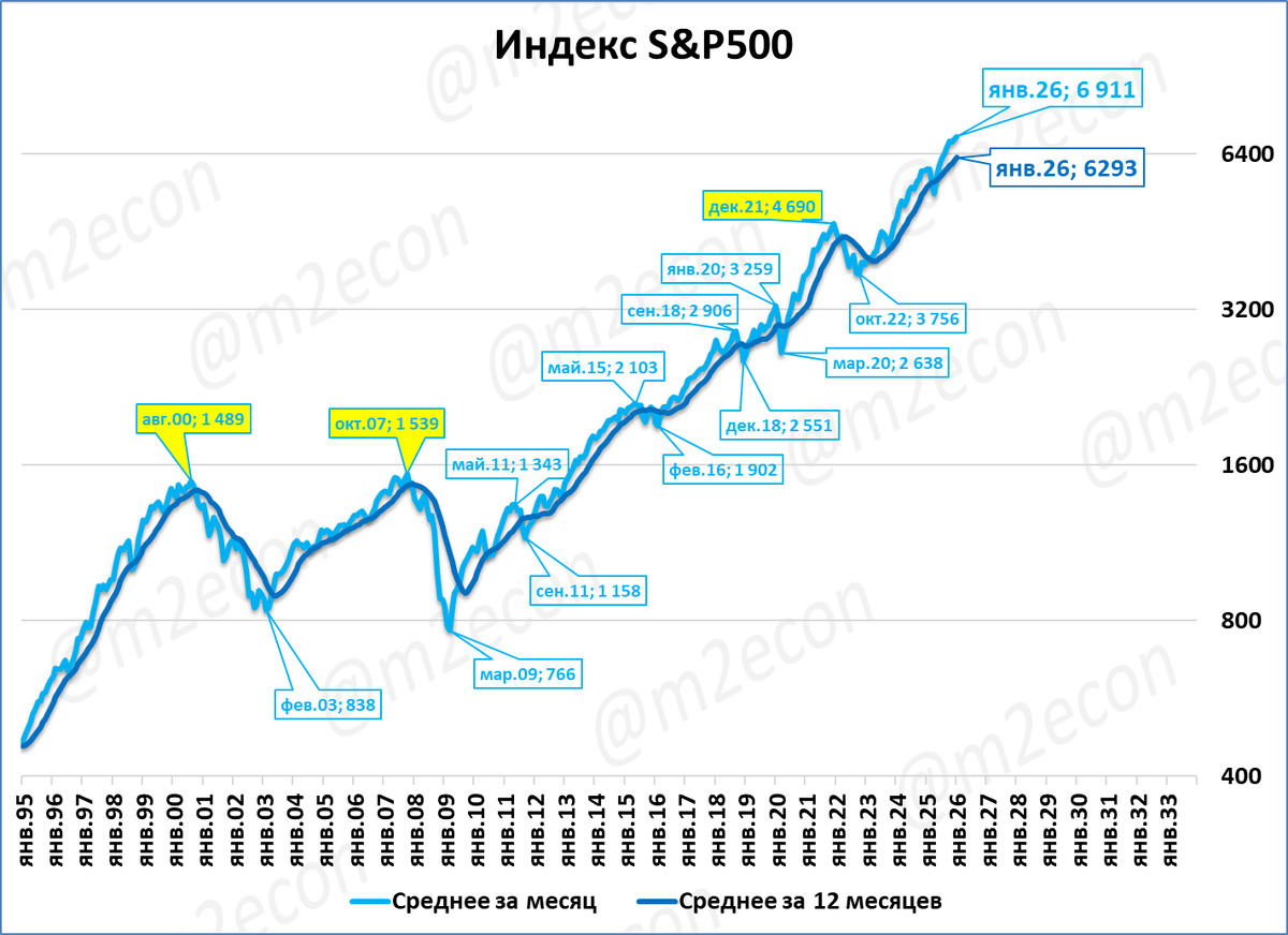 Американский индекс S&P 500 в январе составил 6 911 пунктов (+16%). Это очередной исторический рекорд.