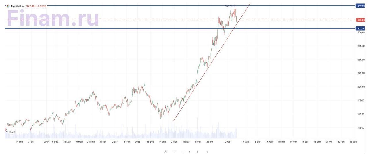 Alphabet опубликовала позитивный квартальный отчет — с опережающим прогнозы ростом выручки и прибыльности, а также сильной динамикой облачного бизнеса. Но объявленный резкий рост капитальных расходов на 2026 год (до $175–185 млрд) в сочетании с высокой волатильностью американского рынка вызвали откат котировок с недавних исторических максимумов. При этом бумаги все еще имеют недостаточный для покупки апсайд, по нашему мнению.