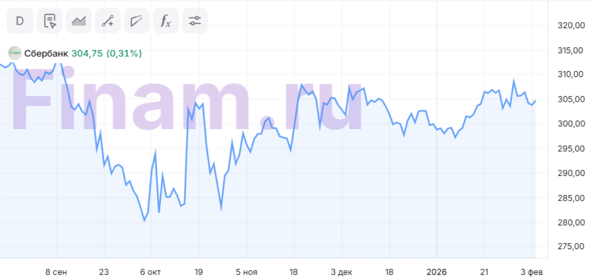 Эксперты «Финама» имеют рейтинг «Покупать» по бумагам «Сбера» с целевой ценой 384 рубля за оба типа акций. Также аналитики ожидают выплату дивидендов в размере 37,2 рубля на акцию по итогам 2025 года.