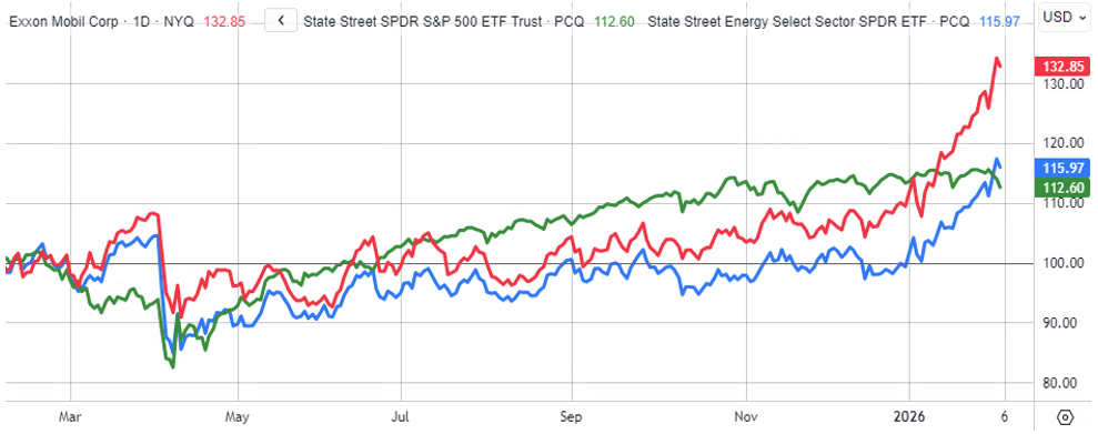 ExxonMobil — крупнейшая американская нефтегазовая компания и вторая по капитализации в мире после Saudi Aramco. Exxon добывает около 4,9 млн б. н. э. ЖУВ и природного газа в сутки. Компания имеет диверсифицированный портфель активов по всему миру в сегментах добычи и переработки нефти и природного газа, нефтехимии и производстве СПГ.