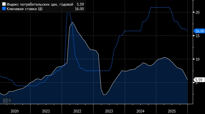 "На заседании 13 февраля ЦБ будет рассматривать сохранение ключевой ставки 16% и ее снижение на 50 б.п., до 15,5%. Регулятор сохранит жесткую риторику и нейтральный сигнал, - прогнозирует эксперт. - Ожидаем, что инфляция в ближайшие месяцы возобновит снижение благодаря жесткой монетарной политике и крепкому курсу рубля". Васильев полагает, что на следующем заседании 20 марта Банк России снизит ключевую ставку на 50 б.п., до 15,5%. К середине года аналитик ожидает ключевую ставку на уровне 14,5%, к концу третьего квартала - 13%, к концу года - 12%. "Прогнозируем, что годовая инфляция к концу года составит 5,3%. При этом мы ожидаем, что устойчивая часть инфляции в середине года снизится до целевых 4% или ниже, - указывает стратег банка. - Поэтому мы ожидаем осторожного снижения ключевой ставки с текущих 16% до 12% к концу года. Среднюю ключевую ставку в этом году мы прогнозируем на уровне 14,3% после 19,2% в 2025 году".
