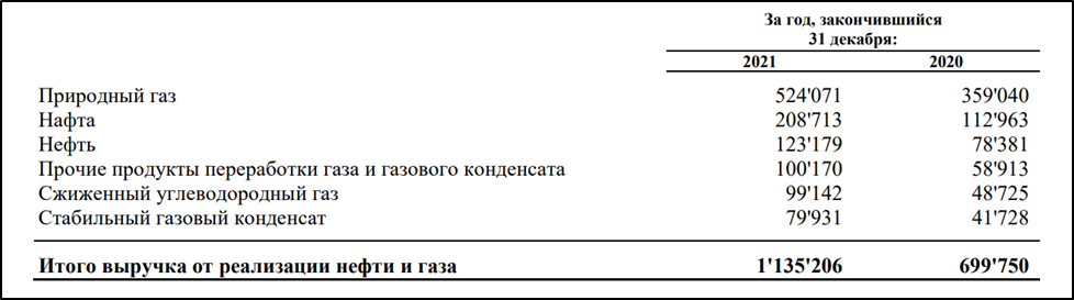 В последних отчетах Новатэк не раскрывает структуру выручки. Но есть данные за 2021 год. 46% выручки составляла реализация газа, а 54% продажа жидких углеводородов.