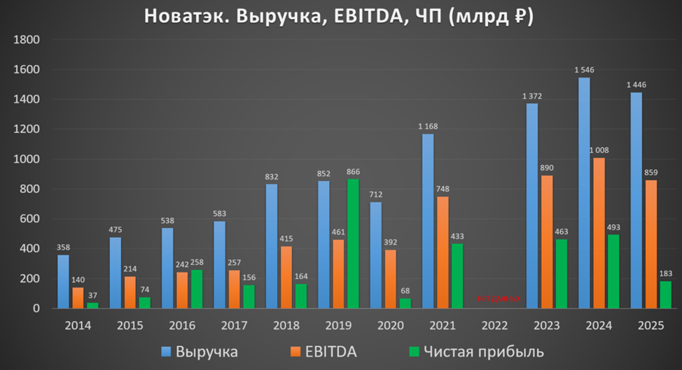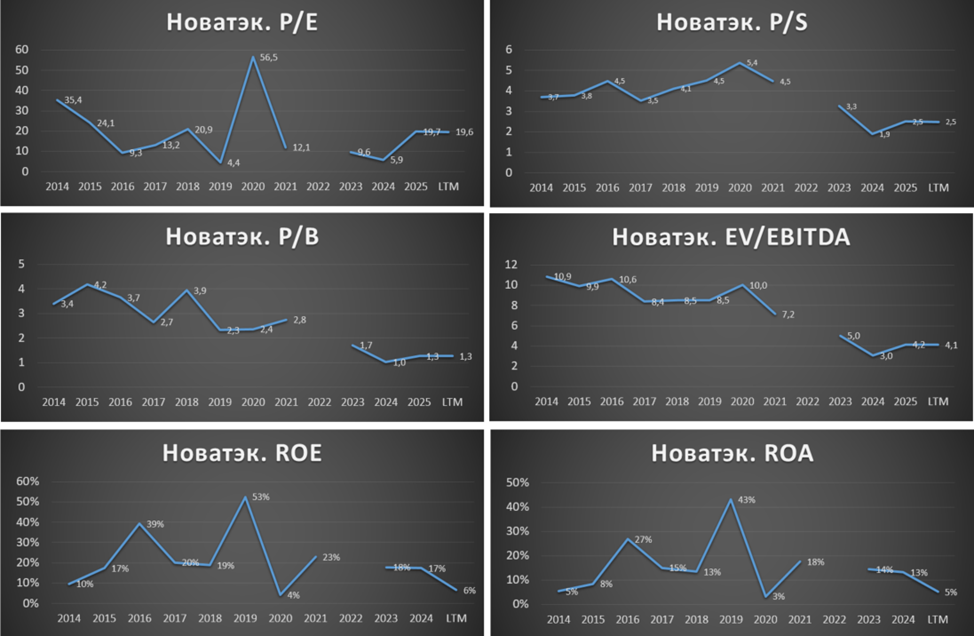 Относительно других компаний нефтегазового сектора, Новатэк оценен дороже, правда, это наиболее эффективная компания. Плюс всё-таки есть надежды, что компания будет дальше расти быстрее. Также отмечу, что пока только Новатэк отчитался за 2025 год, вероятно, у других нефтегазовых компаний, также результаты будут слабыми.