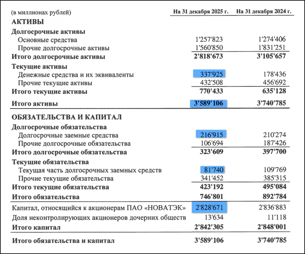 В 2025 году операционные результаты умеренно позитивные. Средние цены на газ были относительно стабильны, а на нефть падали. В итоге, финансовые результаты, с одной стороны, хуже г/г, в частности, ЧП упала почти в 3 раза. Но если ее скорректировать на разовые неденежные статьи и курсовые разницы, то она будет близка к прошлогодним рекордным отметкам, что очень неплохо. Также чистый долг впервые вышел в отрицательную зону. Финансовое положение сильное. Свободный денежный поток рекордный.