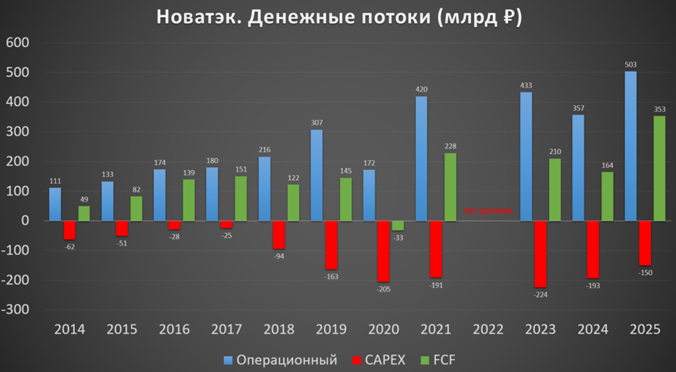 Инвестиционный: -129 млрд (-51% г/г). Капитальные затраты 150 млрд (-22% г/г).