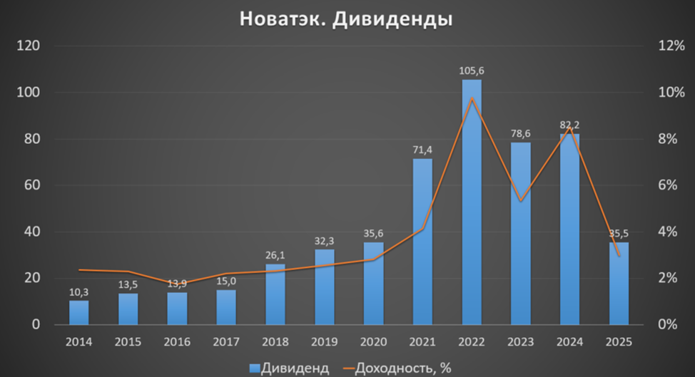 В октябре было выплачено 35,5₽ за 1П 2025. Это 3% доходности к текущей цене акции. Было выплачено 108 млрд, что составляет 52% от всей ЧП 2025 года, скорректированной на курсовые разницы.