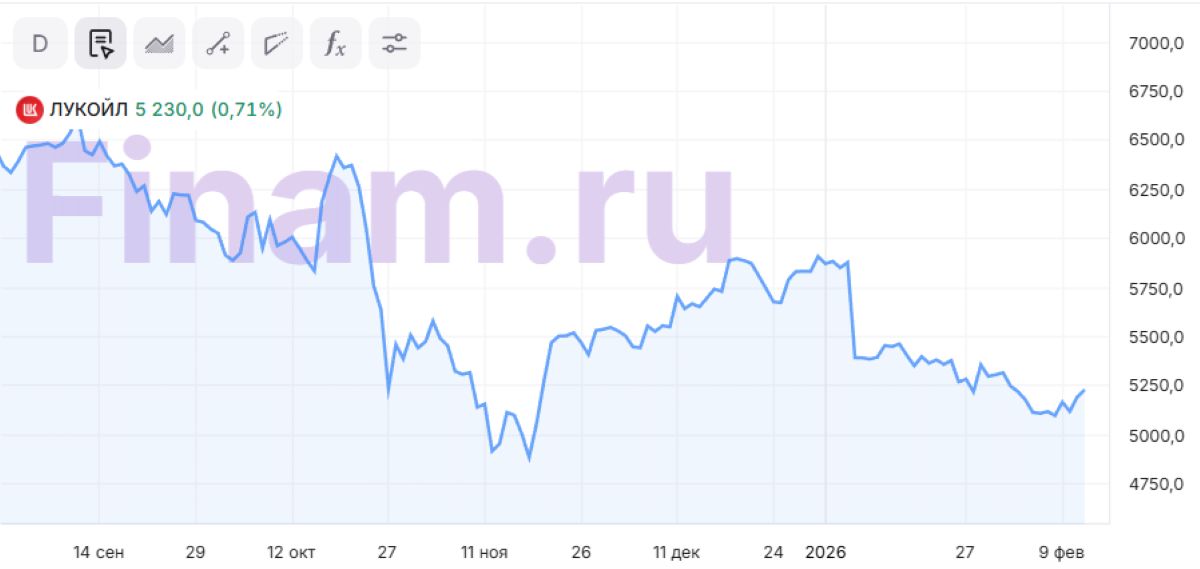 Аналитики Freedom Finance заявляют, что некоторые политические риски в бумагах «ЛУКОЙЛа» будут нивелированы в этом году и компания выплатит дивиденды за 2025 год. Эксперты имеют целевую цену по бумагам нефтяника на уровне 6600 рублей за штуку.
