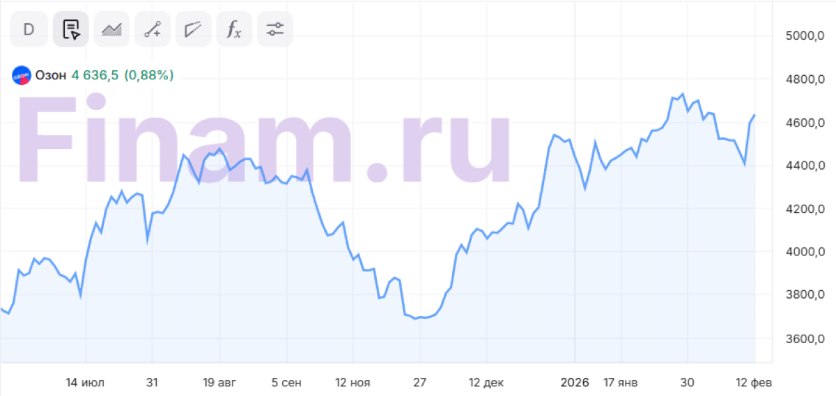 Эксперты ИК «Велес Капитал» отмечают, что акции «Озона» развивают начатый в конце 2025 года восходящий тренд. Они рекомендуют «Покупать» бумаги с целевой ценой 6822 рубля.