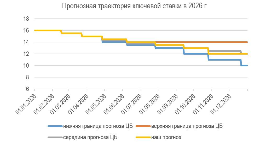 График возможной траектории ключевой ставки ЦБ в 2026 г