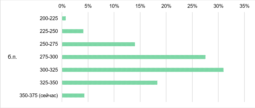 Ожидания рынка фьючерсов по уровню ставки ФРС через год