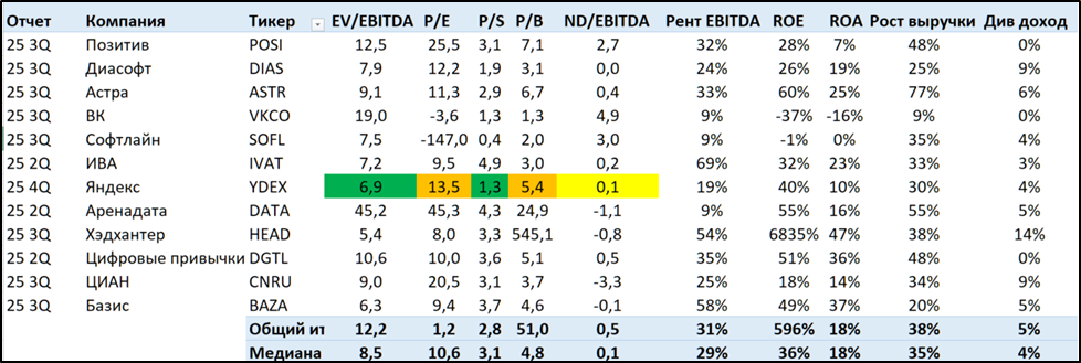 В сравнении с другими IT компаниями РФ, Яндекс выглядит средне.