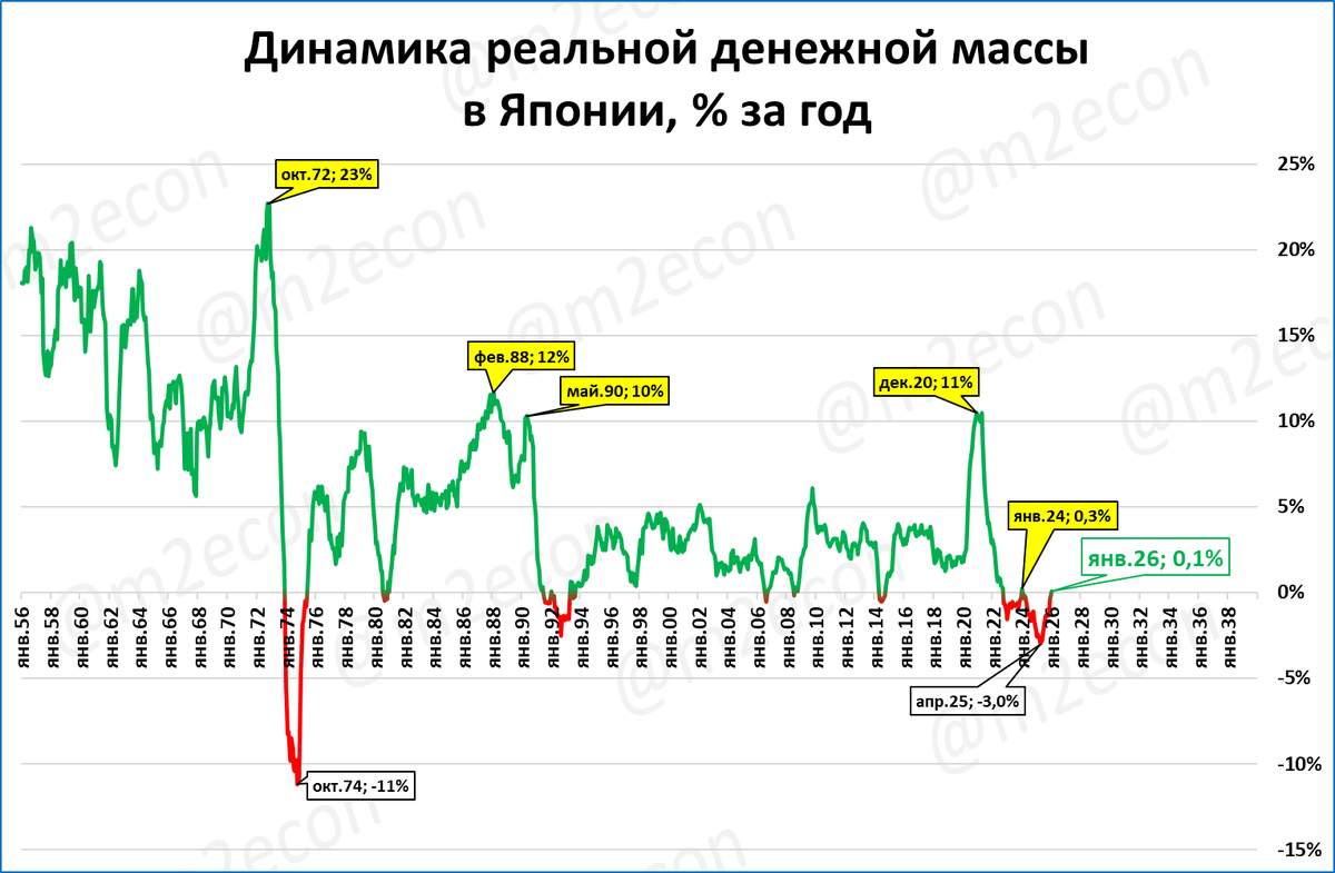 Динамика реальной денежной массы (см. второй график на предыдущей странице) очень хорошо объясняет причину "потерянных десятилетий".