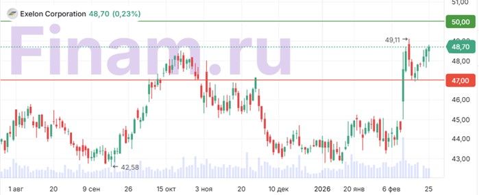 С учетом того, что акции большинства американских коммунальных компаний торгуются близко к историческим максимумам, мы делаем ставку на бенефициаров ИИ-бума и рассматриваем акции Exelon для покупки при коррекции.