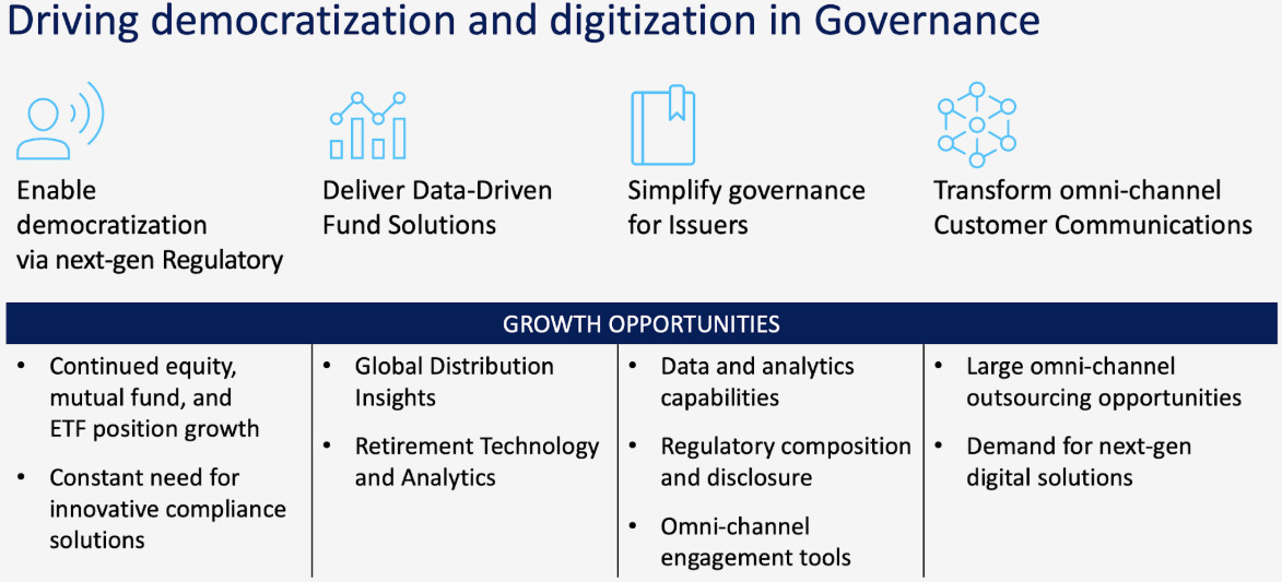 В совокупности мы видим формирование нового слоя рынка, ведь чем больше инвесторов участвуют в голосовании и чем сложнее требования к раскрытию информации, тем выше роль технологической платформы, а Broadridge уже встроена в эти процессы.