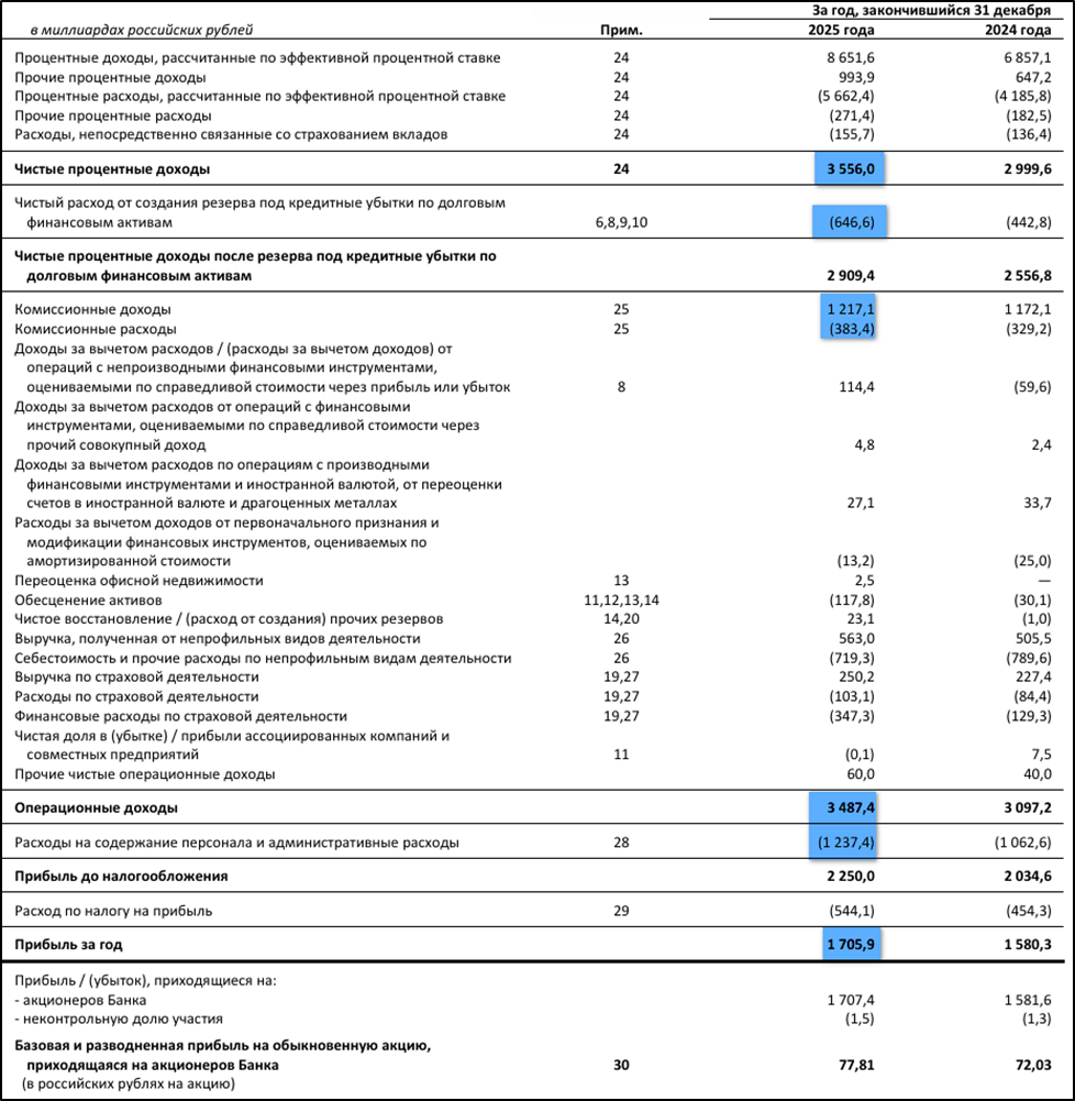 Финансовые результаты продолжают демонстрировать умеренный рост. Из-за высоких ставок в экономике, резко выросли расходы на резервы. Финансовое положение устойчивое.