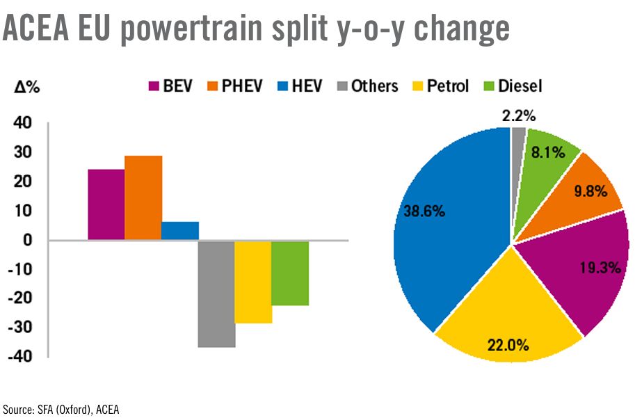 В январе количество новых регистраций автомобилей в ЕС снизилось на 3,9% в годовом исчислении, составив чуть менее 800 000. На долю электромобилей пришлось более 154 000, что составляет 19,3%, по сравнению с 14,3% в январе 2025 года и 17,4% в 2025 году в целом. Во Франции и Германии наблюдался заметный рост доли электромобилей до 28,3% и 22,0% соответственно. Продажи подключаемых гибридных автомобилей выросли на 29%, но составили лишь половину от уровня продаж электромобилей. Продажи автомобилей с ДВС, включая гибриды, снизились на 9% в годовом исчислении.