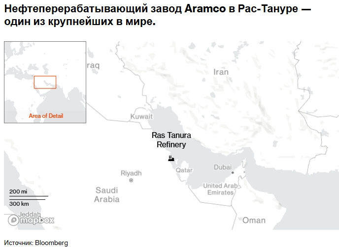 Компания Aramco временно прекратила работу своего крупнейшего нефтеперерабатывающего завода в Рас-Тануре, расположенном на побережье Персидского залива, после атаки беспилотника.