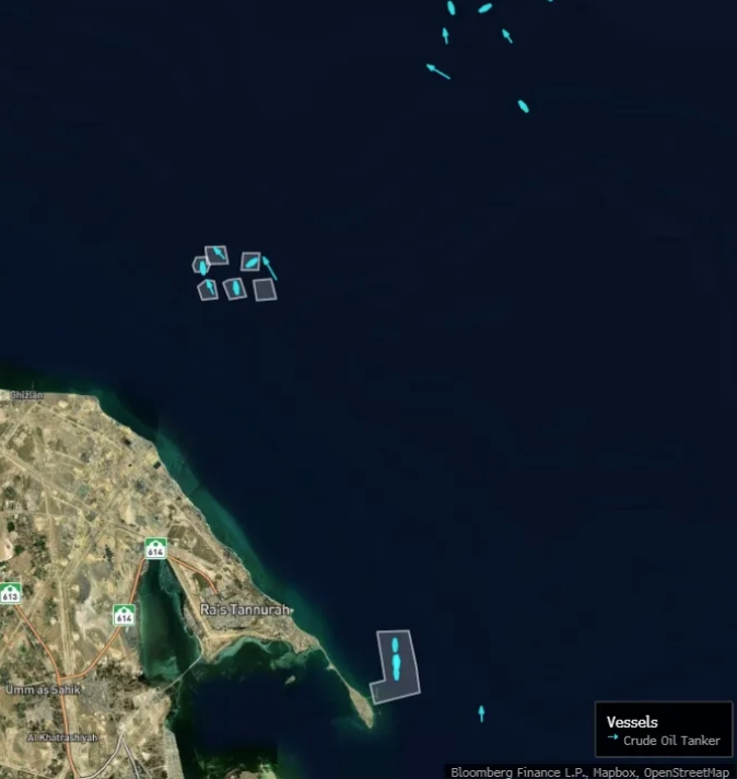 По данным системы отслеживания танкеров Bloomberg, экспорт сырой нефти с терминала на морском острове Рас-Танура и одноточечных причалов в Джуайме продолжается. Все шесть причалов работают, и на данный момент осуществляется погрузка двух супертанкеров и одного судна класса Aframax.