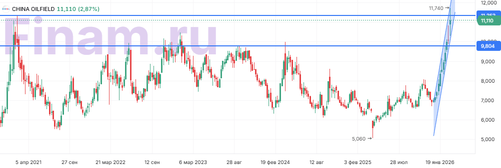 China Oilfield Services — лидер китайского нефтесервиса в сегменте шельфовой добычи, может стать одним из бенефициаров текущих геополитических событий. Китай сильно зависит от поставок через Ормузский пролив и ранее закупал значительные объемы венесуэльской нефти. Неопределенность поставок по этим маршрутам может стимулировать китайских нефтяников для роста собственной добычи, что положительно скажется на нефтесервисе. При этом даже после роста акций оценка China Oilfield Services по мультипликаторам выглядит крайне умеренной для сектора.