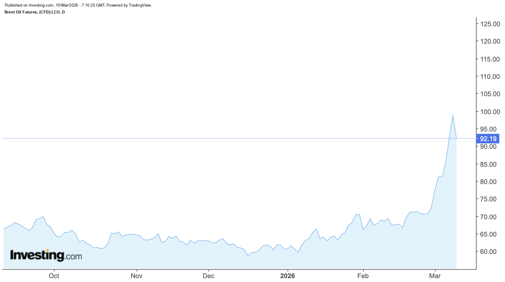 Сырье стало главным индикатором нервозности инвесторов. Уже 1-2 марта котировки пошли вверх на опасениях дефицита поставок. 9 марта стоимость нефти превысила $120 за баррель впервые с июня 2022 года. После слов Трампа о вероятной деэскалации цена марки Brent упала до $92.