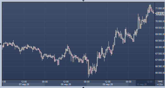 Во вторник стоимость биткоина увеличилась на 3,1%, достигнув 71 088 долларов. Это произошло на фоне роста фондового рынка и падения цен на нефть. Утром в Нью-Йорке цена на биткоин снизилась до 70 878 долларов. Переломный момент на рынке случился после заявления Трампа о скором разрешении конфликта.