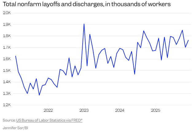 Американцы также сталкиваются с растущим финансовым давлением. За последний год темпы найма существенно снизились, а число увольнений увеличилось.