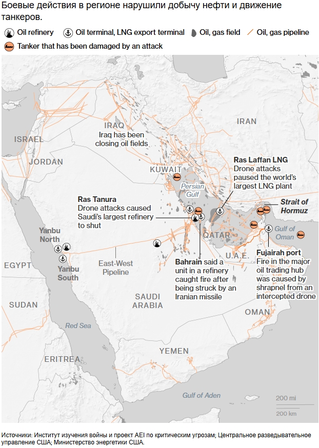 По прогнозам JPMorgan Chase & Co., Саудовская Аравия может исчерпать свои запасы нефти и топлива за более чем два месяца с начала конфликта. Для сравнения, Ирак достигнет этого за неделю, а Кувейт — за две. Эти страны уже начали сокращать добычу до указанных сроков.