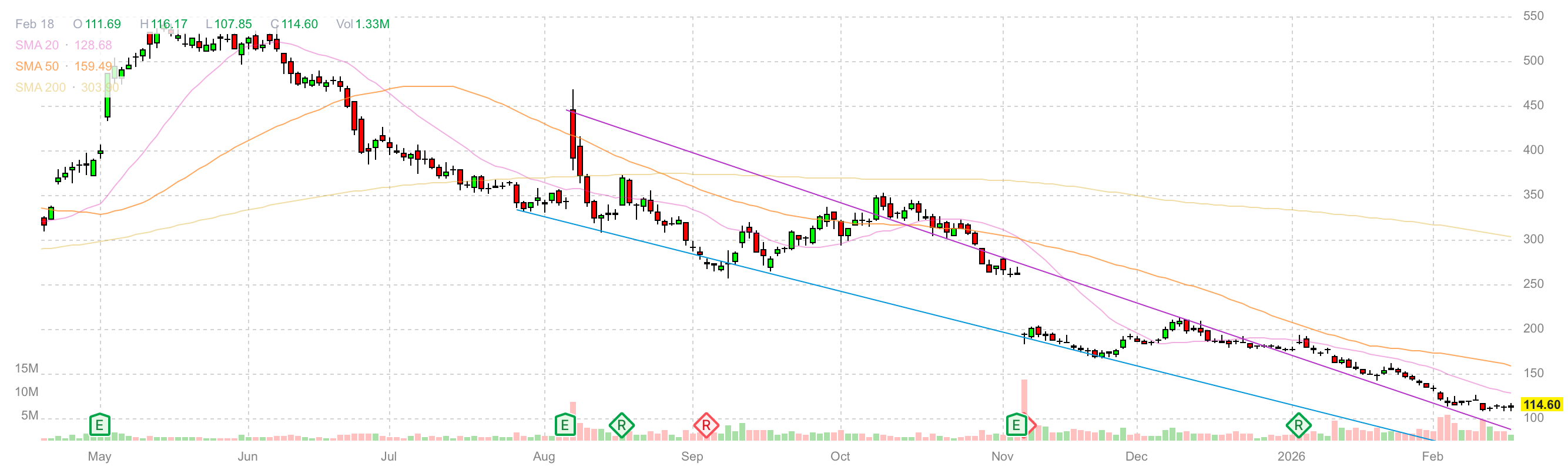 Сейчас Duolingo демонстрирует высокие темпы роста бизнеса и ключевых операционных показателей. Но рынок начал пересматривать долгосрочные перспективы: компания позиционируется как «надстройка» над крупными языковыми моделями (LLM), поскольку она сместила фокус с собственных разработок на интеграцию генеративного ИИ. Ранее инвесторы оценивали компанию на основе формальной причастности к новой технологии, а сейчас фокус сместился к анализу реальной ценности, создаваемой в цепочке развития ИИ. Меняется и восприятие рынком всего сектора.