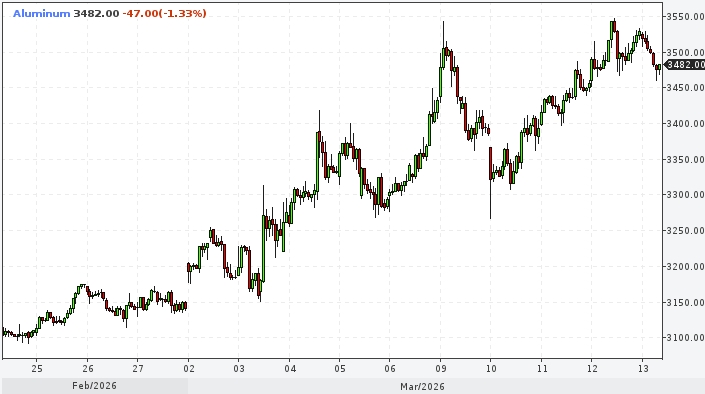 Цена алюминия в пятницу, 13 марта, упала с самого высокого уровня с 2022 года, другие цветные металлы также дешевеют, поскольку на рынках преобладали опасения по поводу экономических последствий затянувшейся войны на Ближнем Востоке.