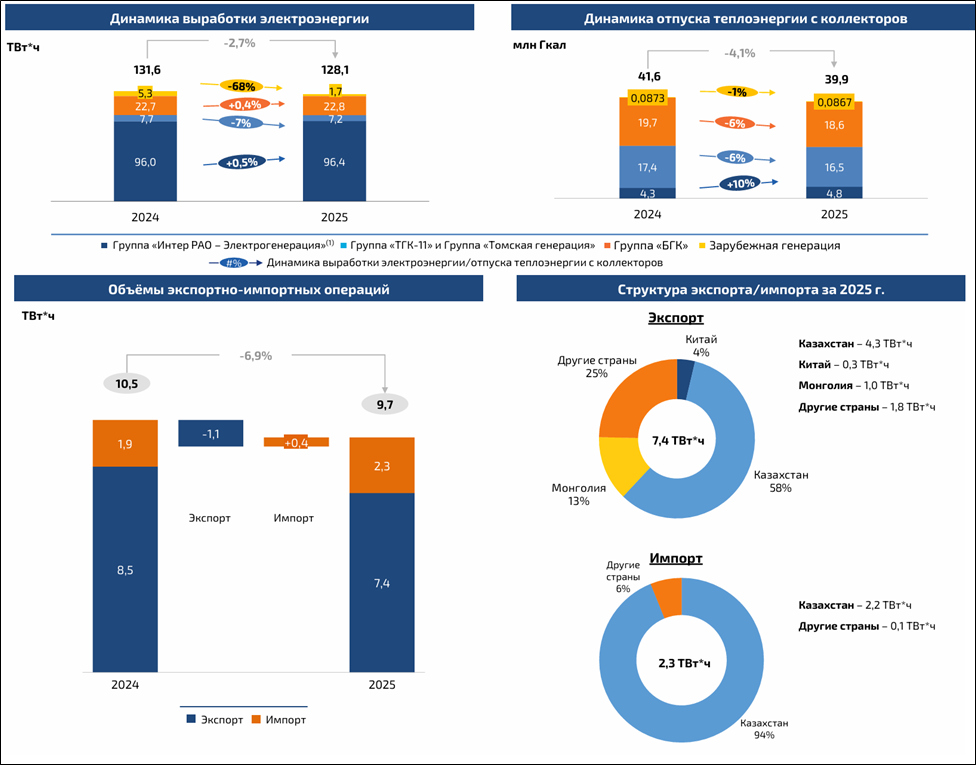 Выработка электроэнергии 128 млрд кВт*ч (-3% г/г);