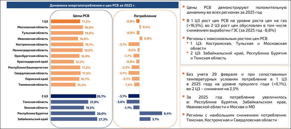 Таким образом, ключевые показатели умеренно снизились. Основные факторы: более теплая погода в 2025 году, рост цен на газ и уголь.