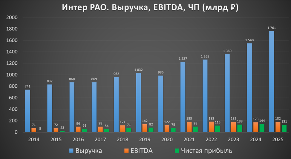Также компания ожидает умеренный рост выручки, примерно соответствующий уровню инфляции и индексации тарифов. По EBITDA также рост на уровне 2025 года, т.е. около 5%. В 2026-2027 годах ИнтерРАО будет сосредоточена на реализации значимых инвестиционных проектов. Эффект по ним начнет проявляться, начиная с 2028 года.