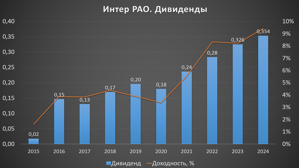 «Интер РАО» отправляет на дивиденды 25% от чистой прибыли. Расчетная дивидендная доходность за 2025 год 10%.