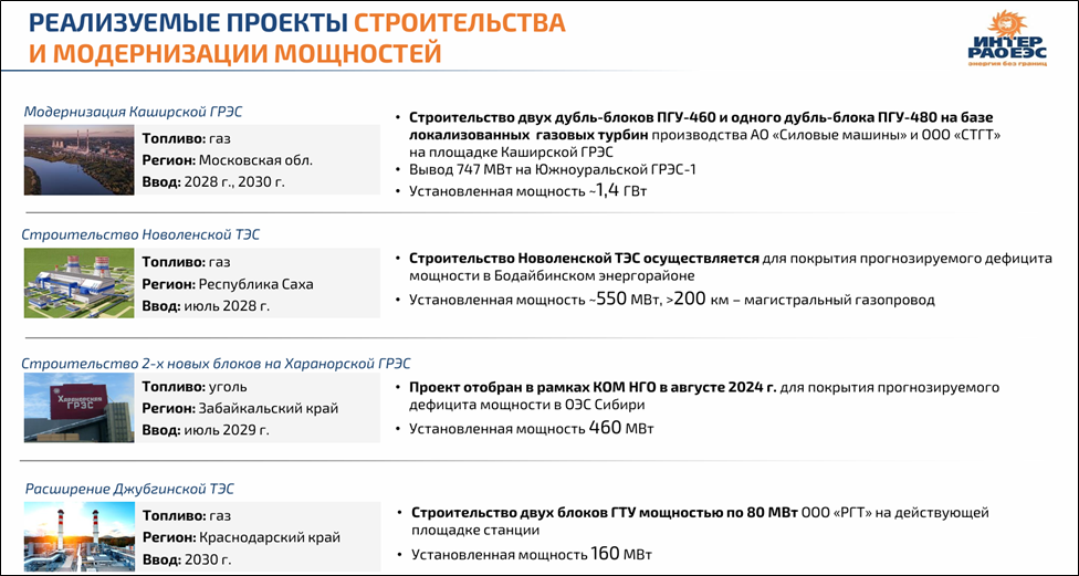 В частности, нужно отметить текущие проекты по строительству Новоленской ТЭС с прогнозными инвестициями 257 млрд. И Харанорской ГРЭС со стоимостью 100 млрд. Плюс около 180 млрд на проекты по программе КОММод