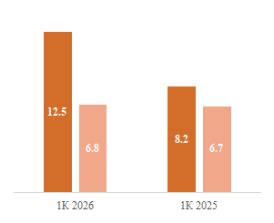 Результаты за 1К 2026 ф. г. оказались сильными. Выручка компании выросла на 29% г/г, до $19,3 млрд. Основным драйвером роста стал сегмент полупроводниковых решений, продажи которого увеличились на 52% г/г, до $12,5 млрд. Ключевой вклад в эту динамику внесла выручка от ИИ, которая достигла $8,4 млрд, увеличившись на 106% г/г на фоне высокого спроса на специализированные ИИ-ускорители и сетевые решения для ИИ. При этом выручка сегмента инфраструктурного ПО подросла лишь на 1% г/г и составила $6,8 млрд, скорректированная EBITDA — на 30% г/г, до $13,1 млрд. Чистая прибыль Broadcom увеличилась на 30,2% г/г, до $10,2 млрд, скорректированная прибыль на акцию — на 28,1% г/г, до $2,05.