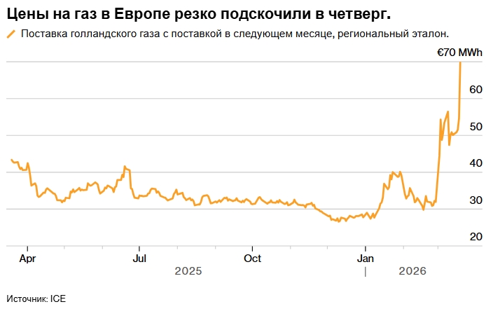 После атак на энергетическую инфраструктуру в Катаре и Иране стоимость газа в Европе достигла рекордных значений с начала конфликта.Индекс TTF, который отражает цену множества газовых контрактов, открылся с увеличением более чем на 30%, поднявшись до 70,70 евро за МВтч, после чего скорректировался до 67 евро за МВтч.