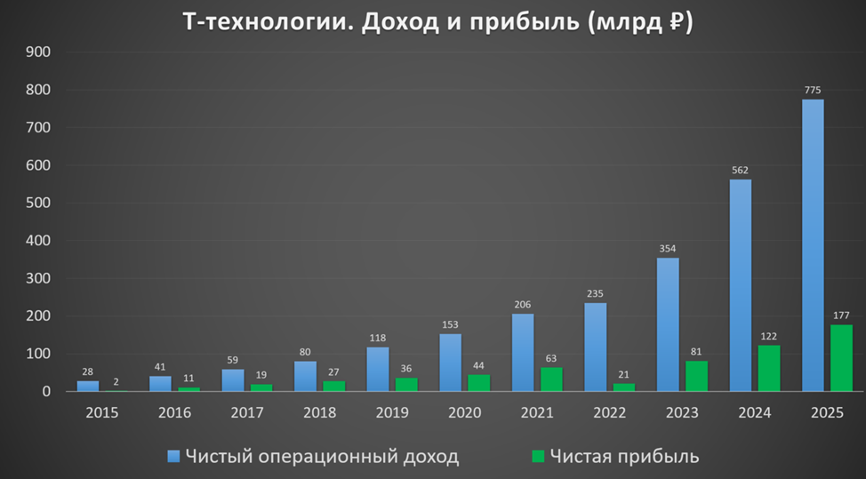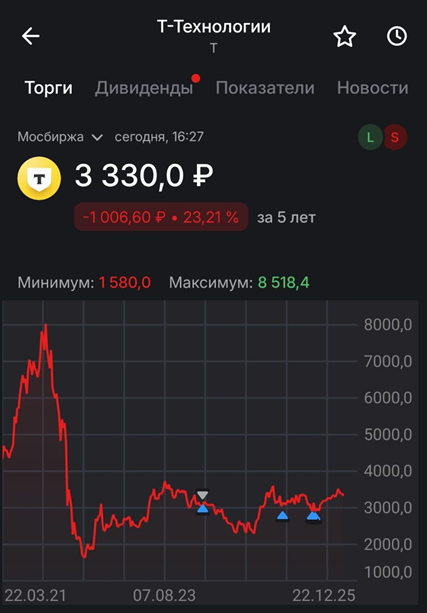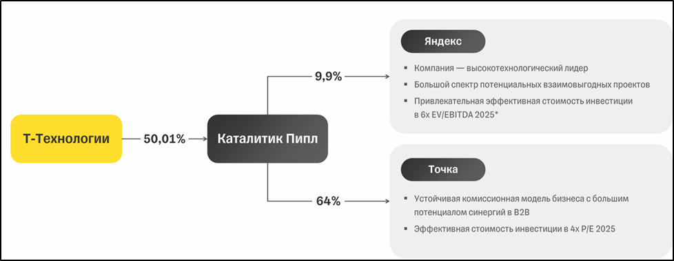 Также стоит отметить, что в 2025 году Группа приобрела через «Каталитик-Пипл» долю 9,95% в Яндексе. Также через «Каталитик-Пипл» компания владеет долями «Selectel» и «Точка Банк». А в марте 2026г. стало известно, что Т-Технологии купят у Яндекса портал «Авто.ру» за 35 млрд. Это позволит создать полную Автовертикаль, покрывающую все потребности автомобилиста.
